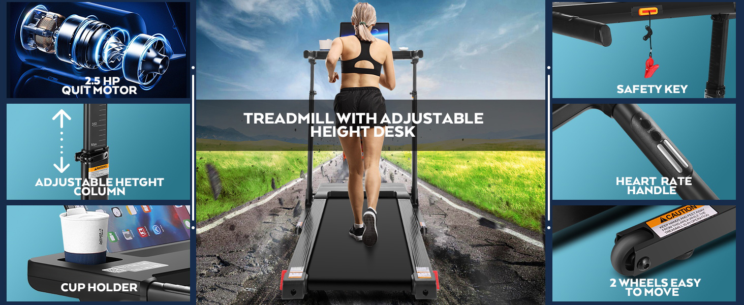 FUNMILY Treadmill with Desk Workstation & Adjustable Height